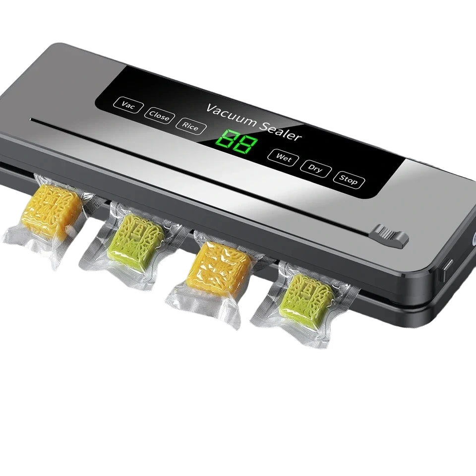 The Smart Sealer That Pays for Itself. Stop wasting money on spoiled food! This Deluxe Electric Vacuum Machine offers Professional 65Kpa Power and Smart Touch-Screen control to extend freshness by up to 5\times. With the Built-In Cutter and versatile Wet/Dry Modes, achieving organized, air-tight, and effortless food preservation has never been simpler."